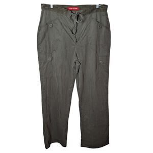 Gloria Vanderbilt, Women 12, Olive Green-- Drawstring Tie, Corduroy Waistband, Button/Zipper Closure, Mutli-Pocket, Utility, Cargo Pocket, Straight Leg, Lightweight Pant