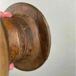 VTG Goblet Pedestal Bowl Hand Turned Wood Display Shelf Decor Eclectic Witchy Material: wood 5" x 5" 11 oz Approx Measurements: Condition: preowned- good- crack at base shown in photos- plz zoom for reference! Thank you for your interest in my small business! :)