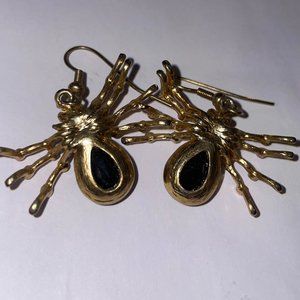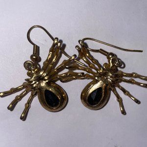 VTG Gold Diamond Spider Black Opal Drop Earrings