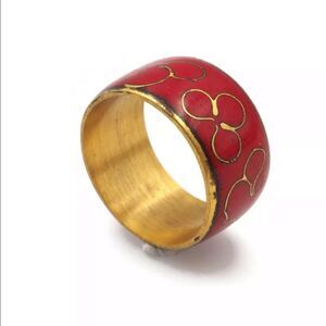 VTG Gold Enamel Cloisonné Abstract Wide Ring