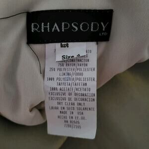 Good overall condition. There are several faint marks on the front of the skirt. They are hard to see in the photos, but they are a rust/gold color, so they are not very noticeable on the gold fabric. There are several between ~mid thigh to shin. A couple are shown in pictures for examples.