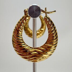 VTG Gold Over Sterling Silver 925 Puffed Textured Hoop Earrings Size 1" Length