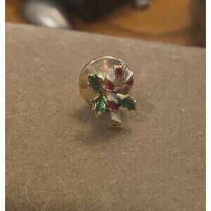 VTG Gold Tone 1/2" , Red, White and Green Candy Cane and Holly Tie Pin