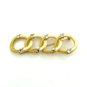 VTG Gold Tone Enamel Brooch Pin Clear Rhinestone Circle Loop Retro