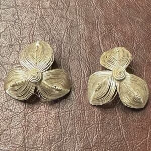Chic MCM vintage gold-tone clip-on earrings with textured filigree petals — made in Germany, timeless floral design that adds instant. Vintage Pre-owned- This item has been gently worn and is in nice condition, minor signs of wear consistent with age. In some lights the filigree looks gold and others it looks silver. Refer to images for condition. Due to light and screen difference, the color may be slightly different from the picture.