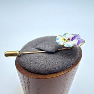 VTG Gold Tone Purple Blue & White Enamel Flower Stick Pin