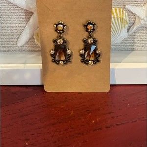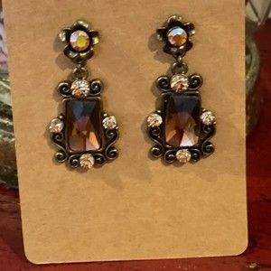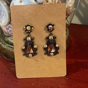 VTG Gold Tone Rhinestone Dangle Earrings.