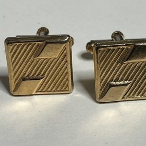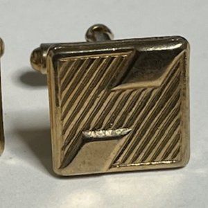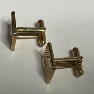 Nice Pair of Vintage Gold Tone Square Shaped Ribbon Style Cuff Links