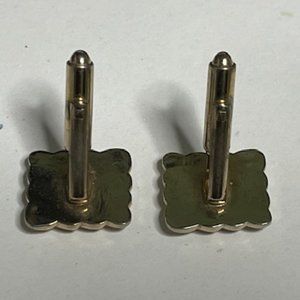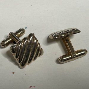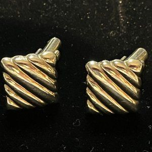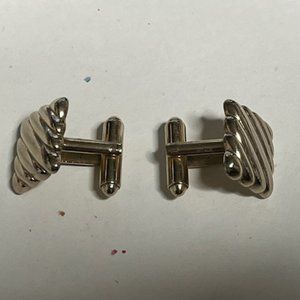 Nice Pair of Vintage Gold Tone Square Shaped Striped Ribbon Style Cuff Links