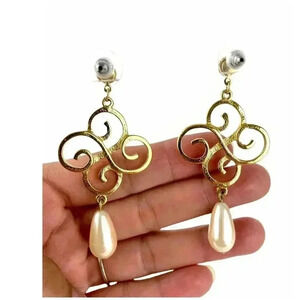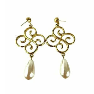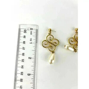 VTG Gold Tone Swirl Design Pearl Dangle Earrings