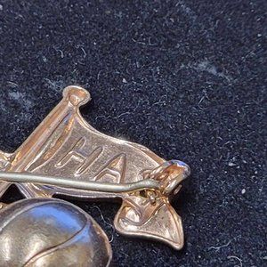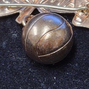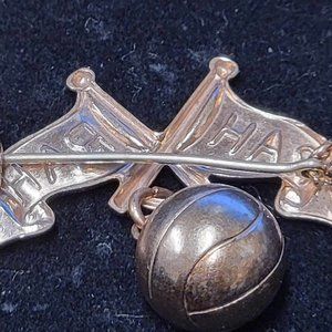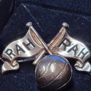 VTG Gold tone charm pin brooch RAH RAH Cheer Spirit pennant Basketball 1930s?