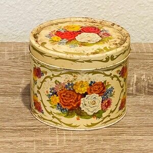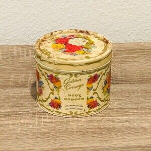 VTG Golden Corsage Apple Blossom Tin Body Powder Full 1940s