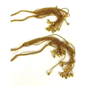 VTG Golden Yellow Mini Seed Bead Tassels - 2 Pc 60" Long Christmas Holiday Decor