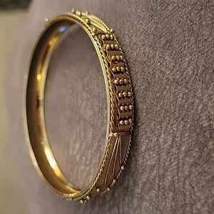 VTG Goldtone Milgrain Art Deco Bangle Gothic Great Gatsby Bracelet