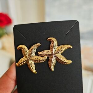 VTG Goldtone Starfish Trendy Boho Pierced Earrings.