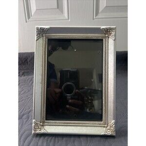 VTG Gorgeous Ornate Wooden Silver Metallic 5x7 in Photo Frame Home Decor Accent