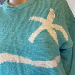 VTG Gotham Ramie Blend Women’s M Knit Sweater Aqua Blue White Pullover New Cozy