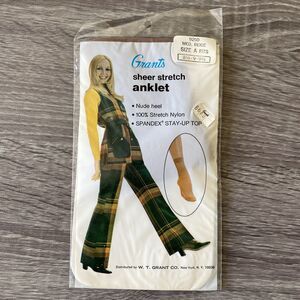 VTG Grants Sheer Stretch Anklet Beige Nude Heel Nylon Spandex Top Size A 8.5-9.5
