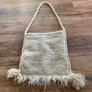VTG Greek Traditional Tagari Shepherd Saddlebag Natural Beige Wool Hippie Boho Chic Cottage Cozy Rustic Farmers Pure Virgin Wool. Fringe.Tassel
