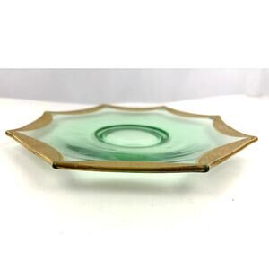 VTG Green Depression Octagon Glass Plate Glassware Floral Gold Trim
