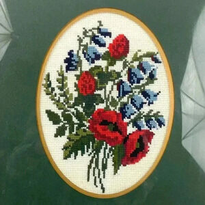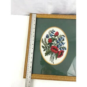 VTG Floral Embroidered Needlepoint Textile Fiber Wall Art 13"x15.5" MCM Tapestry