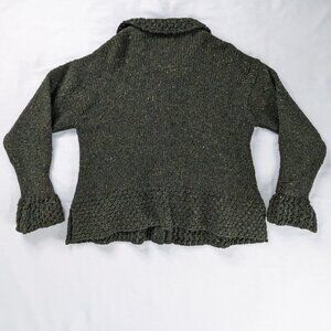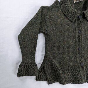 VTG Green Wool Hand Loomed In Ireland Button Front Collared Bell Sleeve Sweater