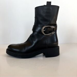 VTG Gucci Dionysus Moto Bikercore Black Leather Silver Buckle Ankle Boot SZ 36.5