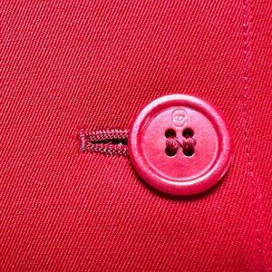 This blazer is a Gucci Red that is more vibrant than an usual red, with its one button closure, looks like a versatile piece that can be dressed up or down but always noticed.
