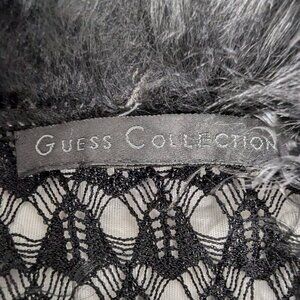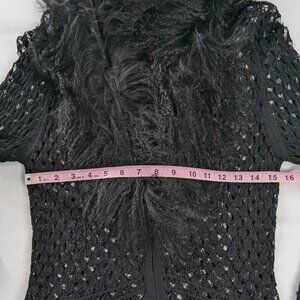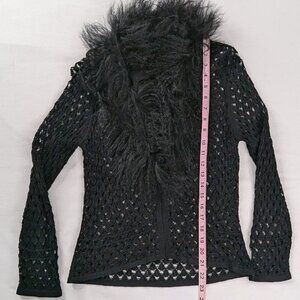 VTG Guess Collection Black Crochet Open Knit Faux Fur Curly Trim Cardigan Y2k