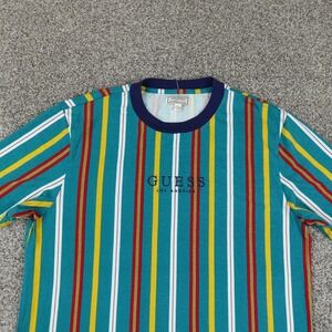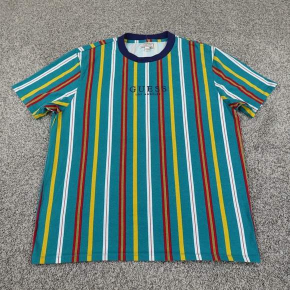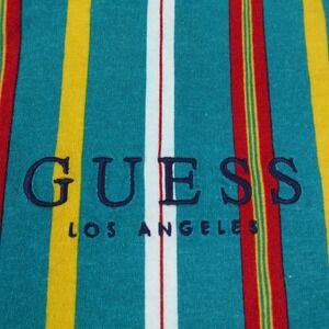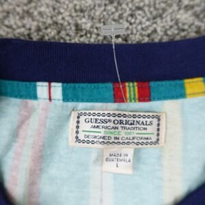 VTG Guess Shirt Mens L Blue Red Yellow Colorblock Stripe Los Angeles Rap 90s Y2K