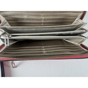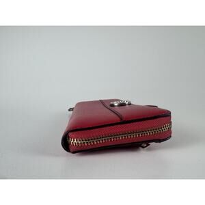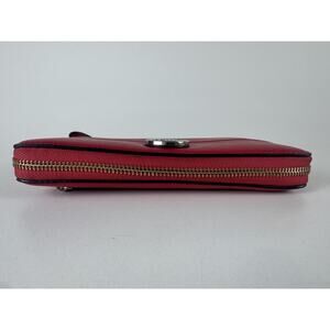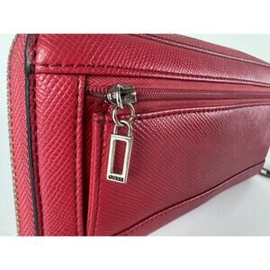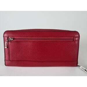 Guess Wallet Womens Red Zip Around Wristlet Faux Leather Logo Clutch Purse Bag