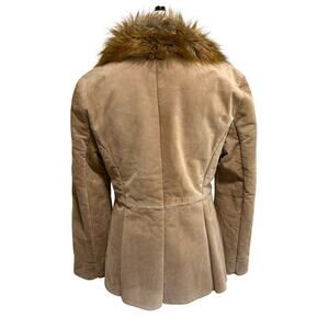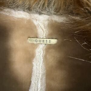 VTG Guess Womens Leather Coat Jacket Faux Fur Collar M Tan Y2K Indie Grunge 70s Retro