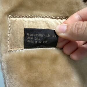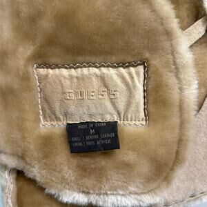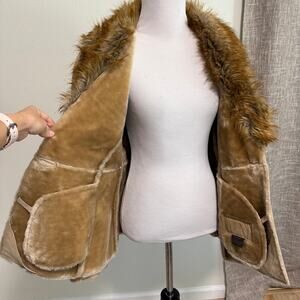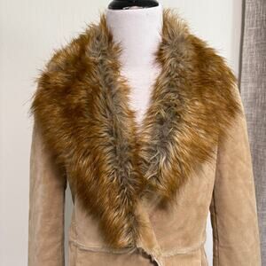 VTG Guess Womens Leather Coat Jacket Faux Fur Collar M Tan Y2K Indie Grunge 70s