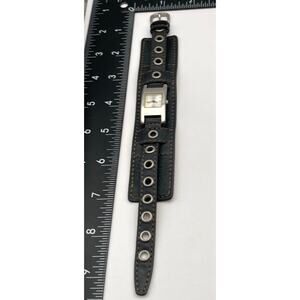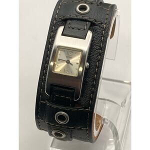 This vintage Guess women's watch is in excellent condition and ready to wear! It features a 19mm leather strap and an adjustable band max wrist size 7" for a comfortable fit. A new battery has been installed, so it's keeping perfect time.