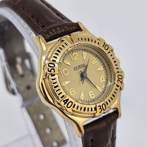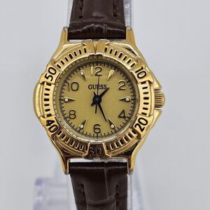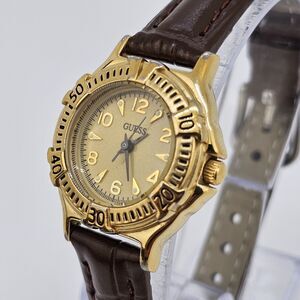 VTG Guess Women's Watch 27MM Gold Dial Brown New Leather Band Straps New Battery
