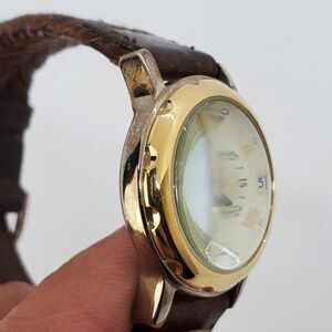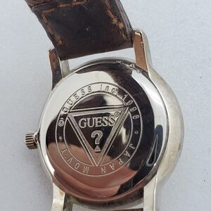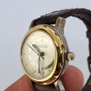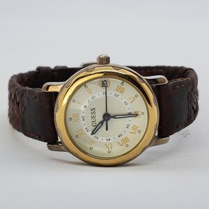 VTG Guess Women's Watch 27MM Roman Numerals Date Brown Leather Bands New Battery