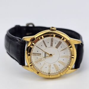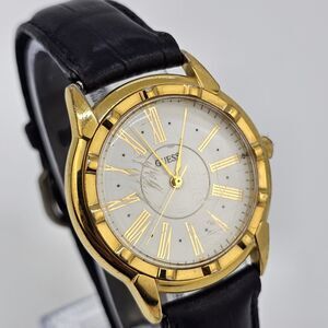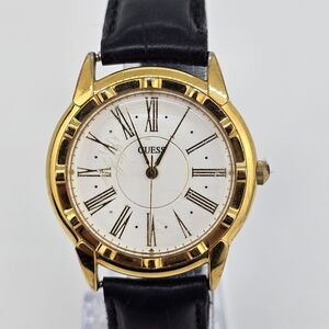 VTG Guess Women's Watch 34MM White Dial Black Leather Bands New Battery