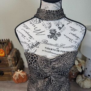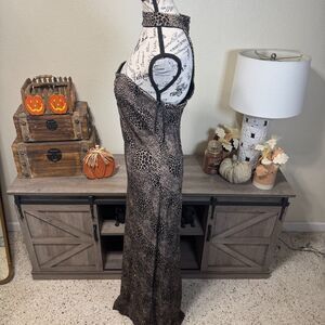 VTG Gunne Sax Jessica McClintock Y2K Glitter Leopard Halter Maxi Dress Jr Sz 9