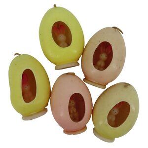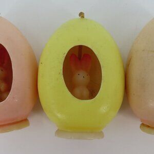VTG Gurley Set of 5 Yellow Pink Easter Bunny Egg Diorama Candles Not Burned