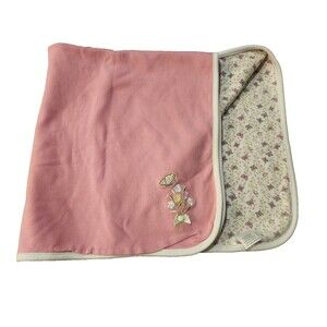 The 2005 VTG Gymboree Cotton Baby Blanket in Pink with Butterfly Flowers is a charming and versatile addition to any baby's nursery. Made from soft cotton material, this reversible blanket features embroidered sweethearts and flowers, adding a touch of whimsy to the design. Pre-owned in good used condition, small light stain (see photos). Zoom over ALL photos they are part of the description.