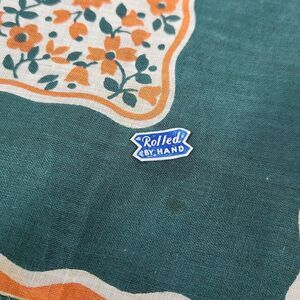 VTG HANKIE GREEN ORANGE BOLD PRINT FLORAL HAND ROLLED EDGE RETRO FUNKY BRIGHT