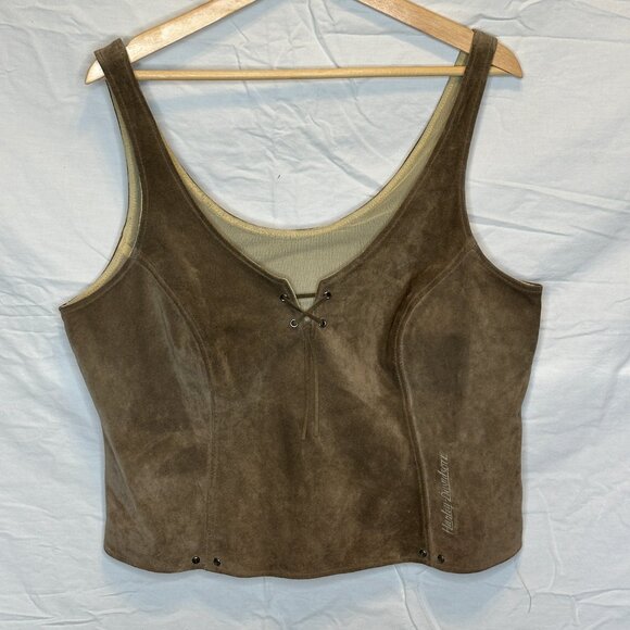 VTG HARLEY DAVIDSON SUEDE LEATHER RIDING CORSET VEST TOP SIZE 42/14