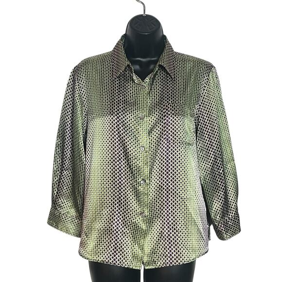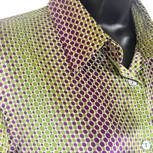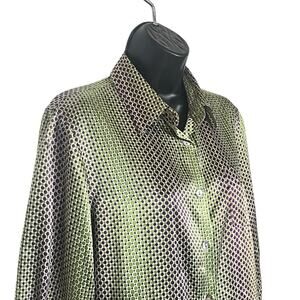VTG HARVE BERNARD 90s Y2K SATIN BLOUSE BUTTON UP PURPLE GREEN RETRO STRIPE S M