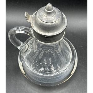 VTG HEISEY No. 1225 Sawtooth Bands Syrup Molasses Pitcher Metal Lid Spout -7O