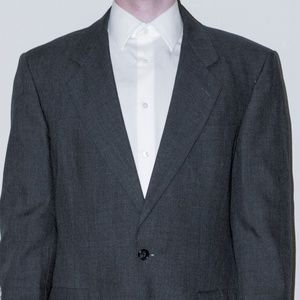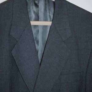 Dark Grey Blazer originally bought at the Highlander clothier during their "turn of the millennium sale", style wise its pretty conservative with moderate shoulder padding, and what id consider an average looking lapel area.