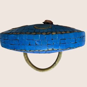 💙 VTG HIMALAYAN TIBETAN HANDMADE MOSAIC CLUTCH DETACHABLE SHOULDER CHAIN BLUE