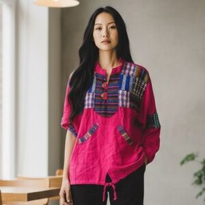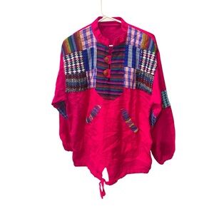 VTG HOMEMADE MEXICAN PONCHO SWEATER Vibrant colorful Patchwork top pink tribal