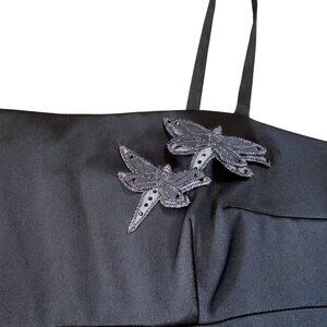 LITTLE BLACK DRESS - SPAGEHETTI STRAP PENCIL DRESS WITH DRAGONFLY ACCENTS - PERFECT COCKTAIL PARTY DRESS, PLEASE SEE MEASUREMENTS BELOW, SOME VERY MINOR SIGNS OF WEAR