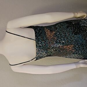 VTG HYPNOTIZED 1990s Peacock Spaghetti Strap High Waist Resort Slip Maxi Dress