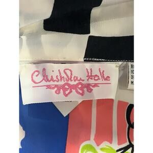 The VTG Halle Postcard Print Silk Rainbow Print Vacation Tropical Button Down Shirt is a vibrant and stylish blouse designed for women. Made of silk with a tropical theme, this shirt features a multicolor rainbow print that adds a fun and tropical touch to any outfit. The button down style and regular size make it a versatile and comfortable piece that is perfect for vacation or casual wear.
